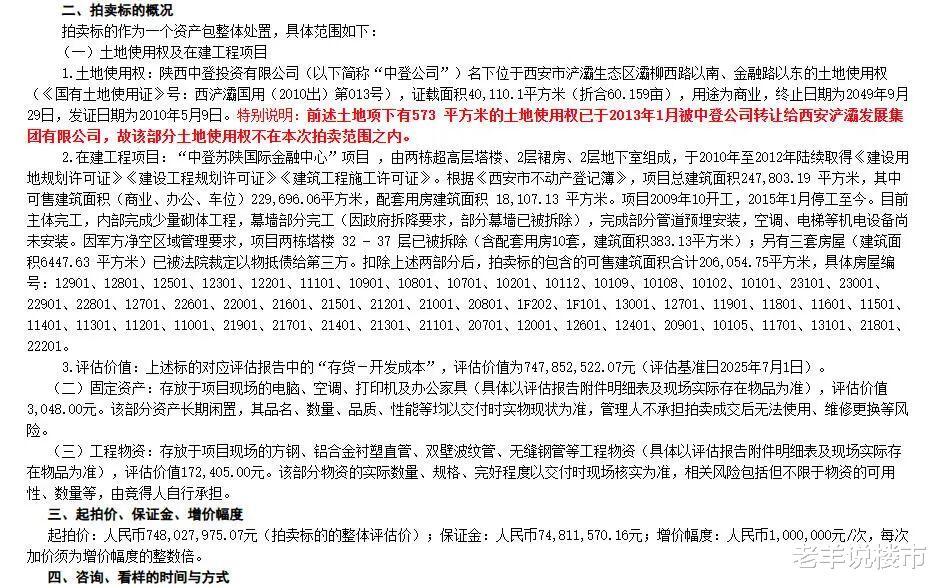 近日,浐灞板块著名“烂尾楼”苏陕国际金融中心被摆上货架,计划于2026年1月5日正式拍卖,起拍价格7.48亿元。