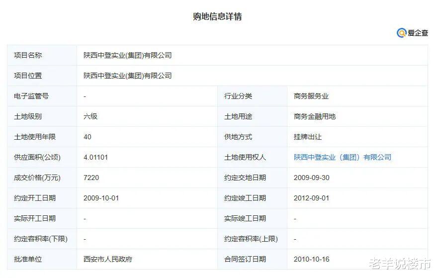 首先从产权方面看,陕西中登实业集团于2009年10月16日摘地,用地面积60.159亩,土地性质为商业用地,2010年5月办理《国有土地使用权证》,土地使用权至2049年9月29日,截至2026年1月份,产权年限仅剩不足24年,缩水严重。