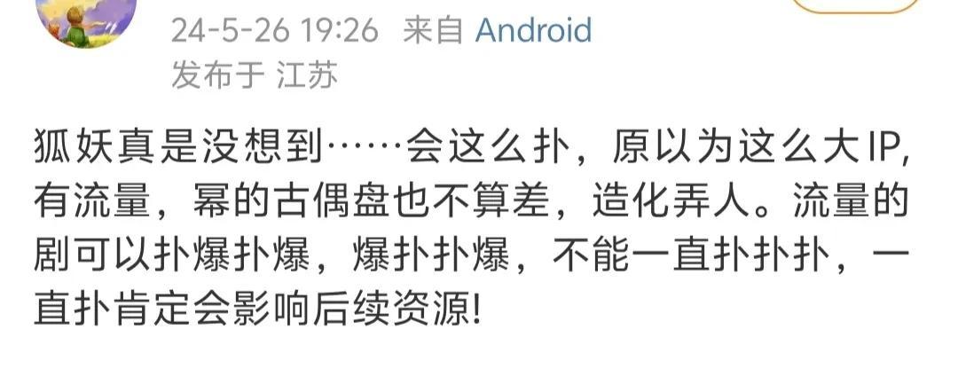 网友:流量的剧可以扑爆扑爆,爆扑爆扑,不能一直扑扑扑。