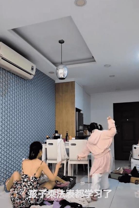 一边整理衣物的咸素媛也不忘与陈华聊起女儿的学习进展,她自豪地说女儿已经会背韩国的乘法口诀了。陈华听后感到非常高兴,随即提议让女儿也学习中国的乘法口诀。对此,咸素媛表示会花时间指导女儿,显然是一位温柔且耐心的好母亲。