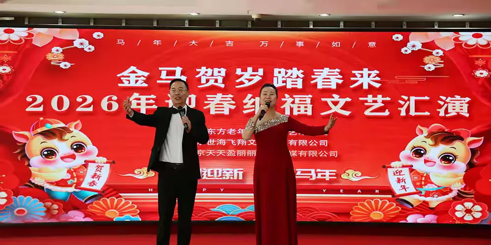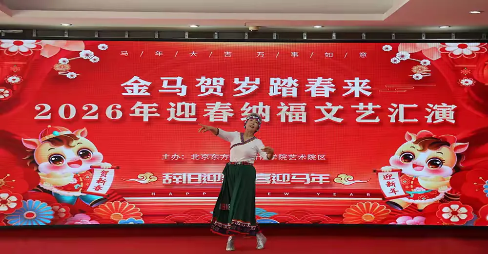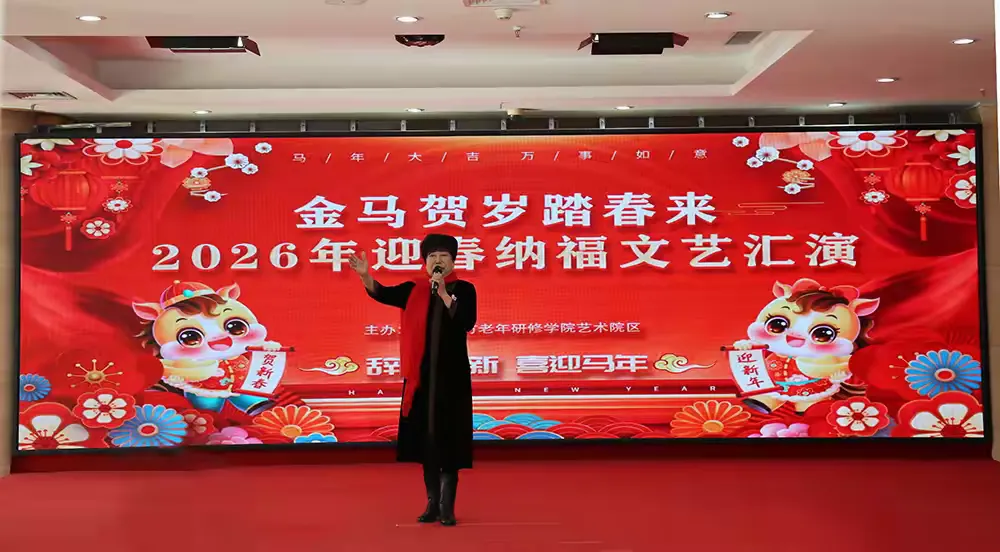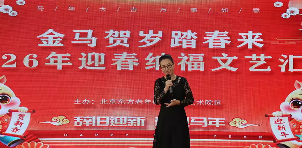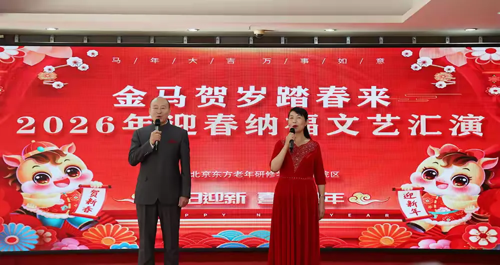 2026年1月23日上午,由北京东方老年研修学院艺术院区主办,北京世海飞翔文化传媒有限公司、北京天天盈丽丽文化传媒有限公司协办的“金马贺岁踏春来——2026年迎春纳福文艺汇演”在北京市密云区桃源公馆隆重举行。来自北京东方老年研修学院艺术院区的数十名学员载歌载舞,以汇报演出的形式展示自己一年来的学习成果,迎接新春佳节的到来。