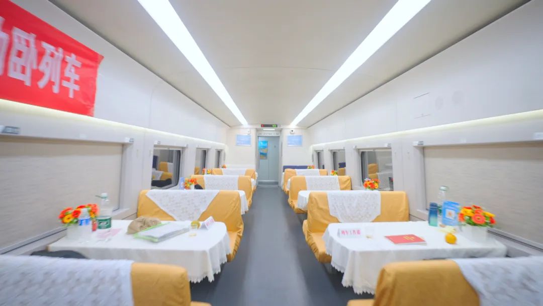 (配图:一张高铁车厢内干净整洁的图片,与过去绿皮火车拥挤脏乱的图片形成对比)