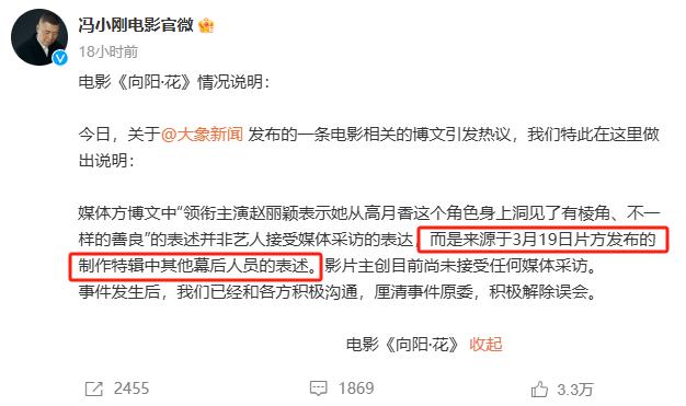 原来是某官方媒体发布了一篇关于赵丽颖《向阳・花》电影的采访报道。