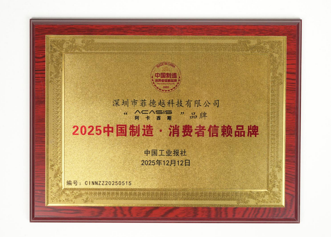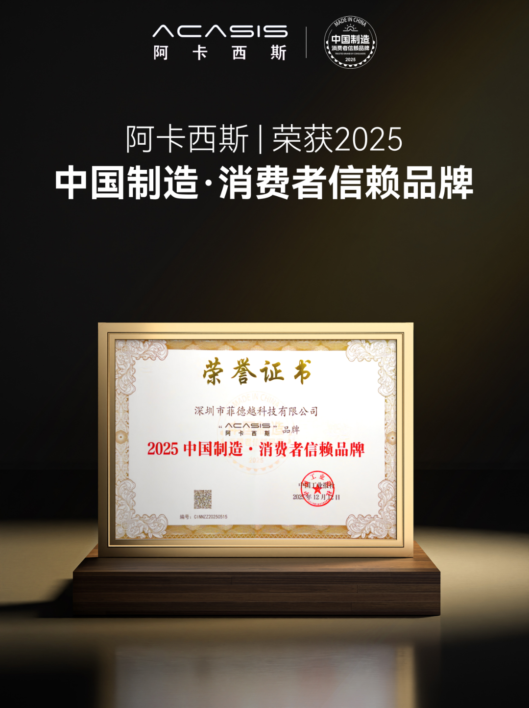 2025年12月26日,深圳——近日,由中国工业报社主办的“2025中国制造·消费者信赖品牌”申报公示工作陆续展开。凭借在数码存储与高速传输领域的卓越表现及深厚市场口碑,深圳市菲德越科技有限公司旗下品牌“ACASIS阿卡西斯”成功入选,荣获“2025中国制造·消费者信赖品牌”殊荣。