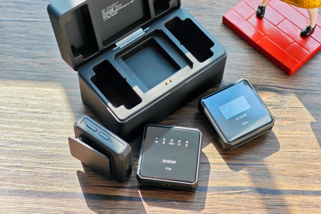 ▲领夹麦克风以及接收器都采用了正正方方的设计,接收器甚至还有TFT彩屏!绝了!
