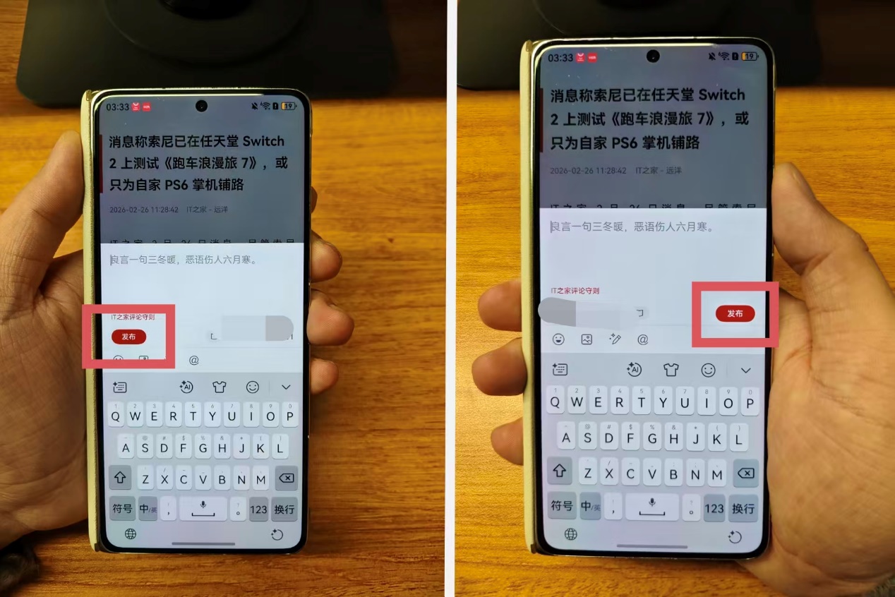 除了最让他在意的单手接电话场景,智感握姿也让日常用机的体验同步变顺手,像他平时爱刷的鸿蒙版好看视频、看的科技新闻平台IT之家,还有听歌用的QQ音乐,点赞评论、回帖发送、歌曲定位这些操作的按钮,都会跟着握持手调整位置,简单演示了几下,他看得连连点头。