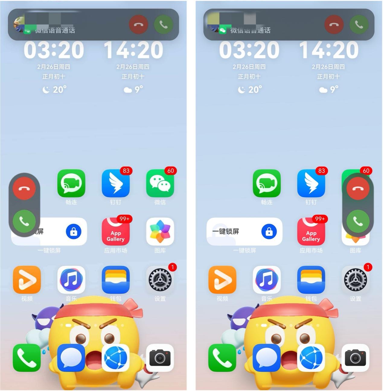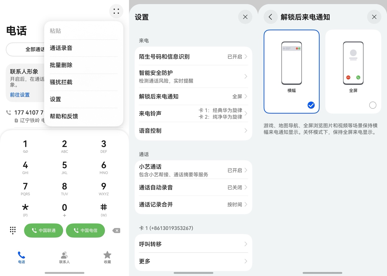 只有系统电话和畅连通话,需要去电话应用里,点右上角的设置,把来电提醒改成“横幅”模式,就能正常触发。