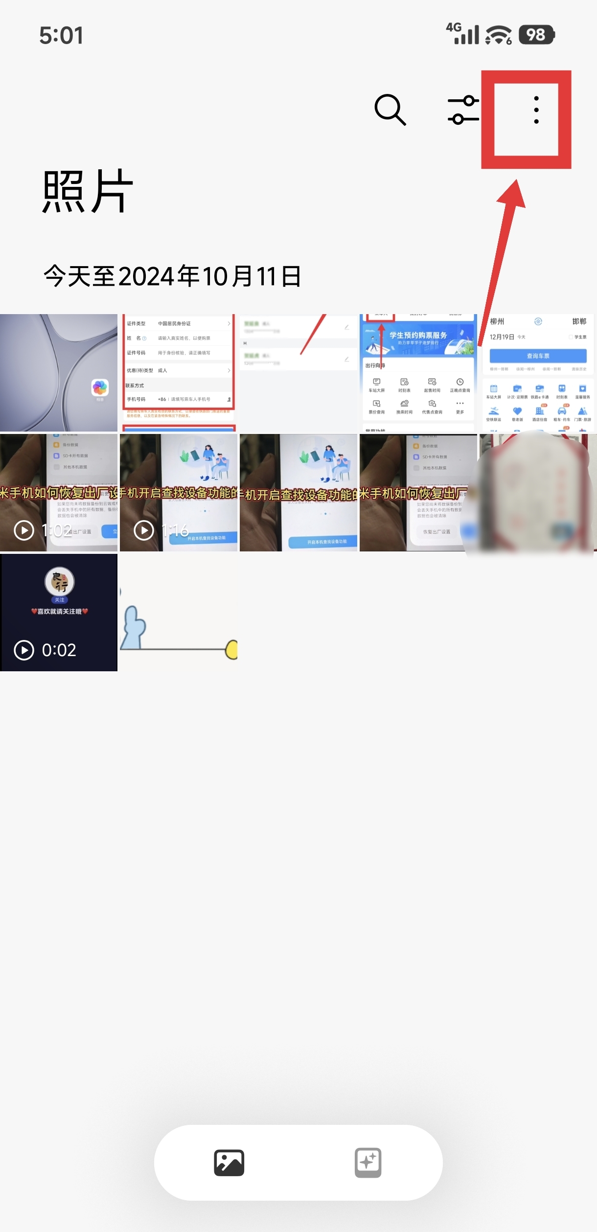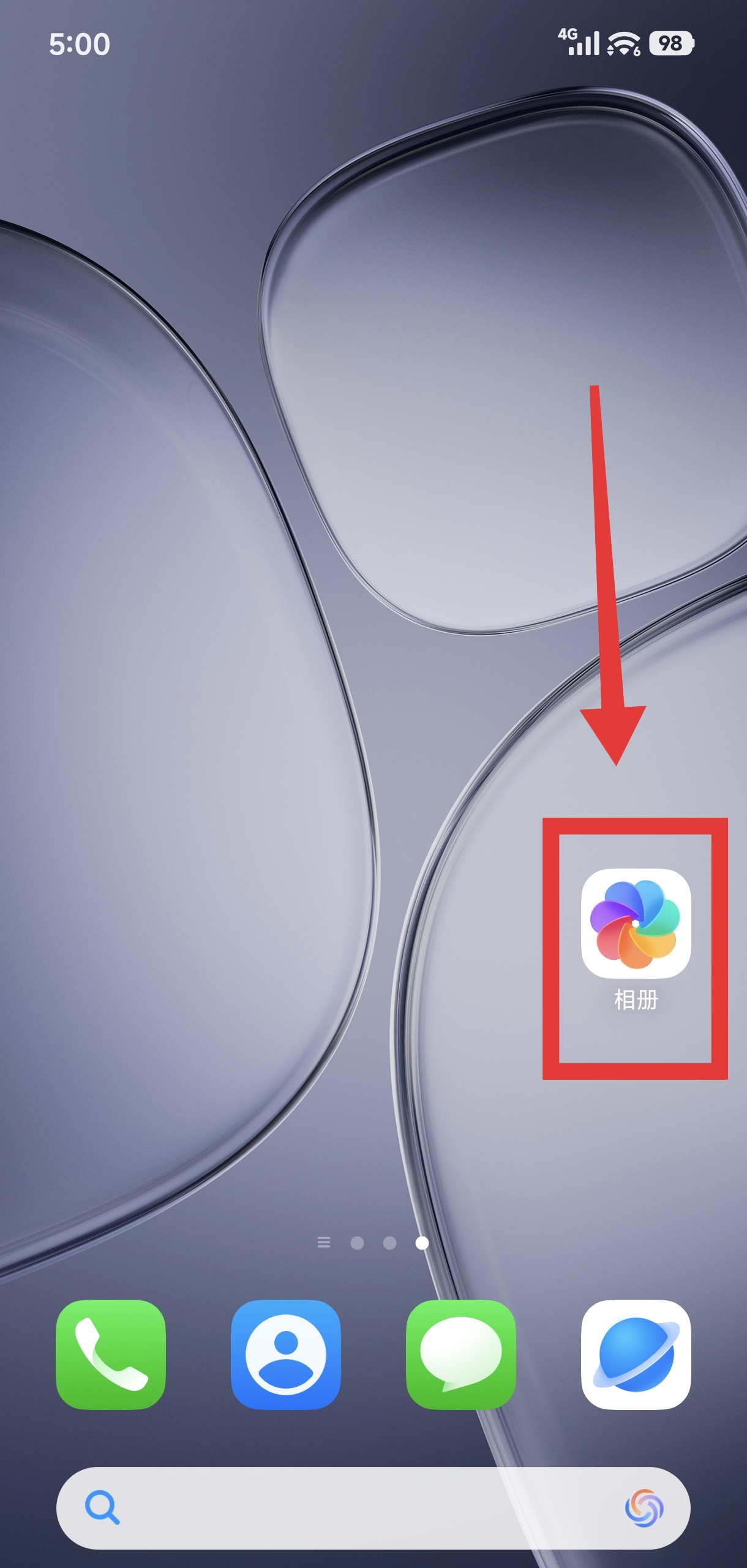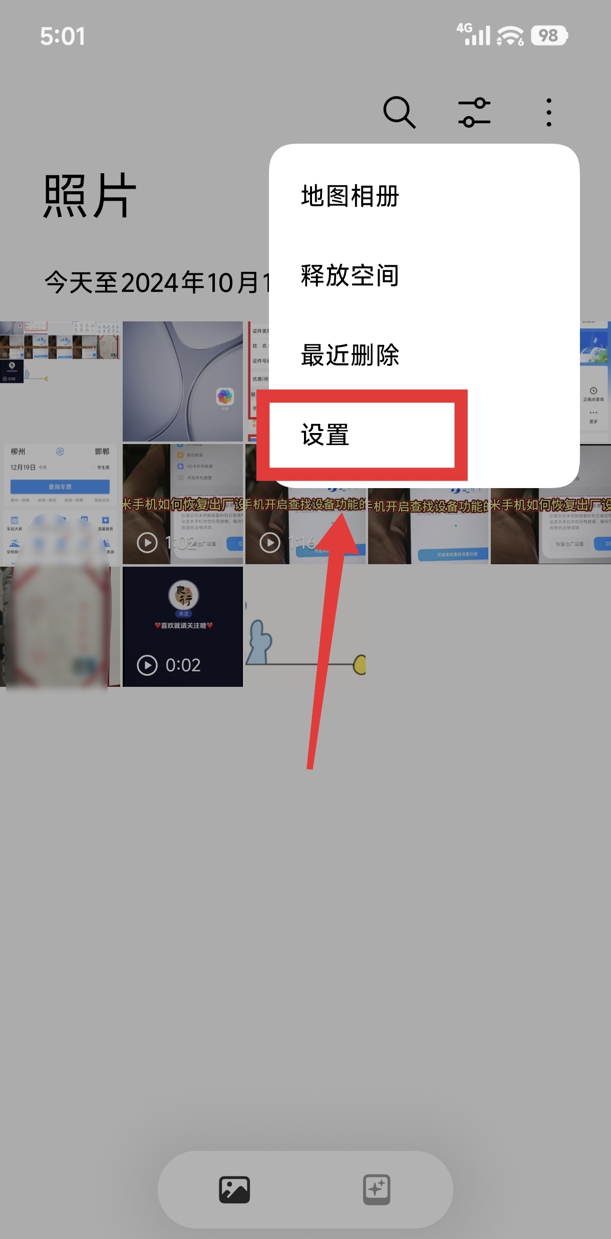 1.首先打开手机主页面,点击【相册】。2.进入到相册页面后,点击右上角的三个点。3.进入到该页面后,点击【设置】选项。4