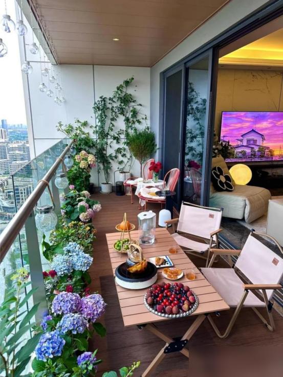 就说不封阳台这事儿,我邻居家刚装完,直接把阳台改成“小花园+茶歇区”:摆了张折叠藤桌,放了两盆绣球,周末跟对象煮点茶晒晒太阳,风一吹绣球花晃悠,比封闭阳台的“玻璃盒子”有温度多了。关键是省了封阳台的一万多块——那些钱用来买喜欢的绿植、茶具,不香吗?而且只要做好排水防水,选个密封性好的阳台门,下雨也不怕飘进来,反而多了个“接触自然的小空间”,你说这是不是比封闭阳台更懂生活?