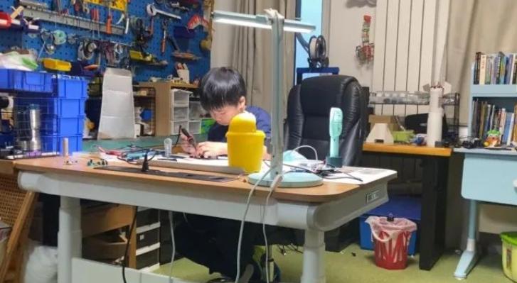 严弘森出身的家庭不算优越,所以,父母为了他的航天梦,没有多余的空间,只有把客厅改造成他的工作室。