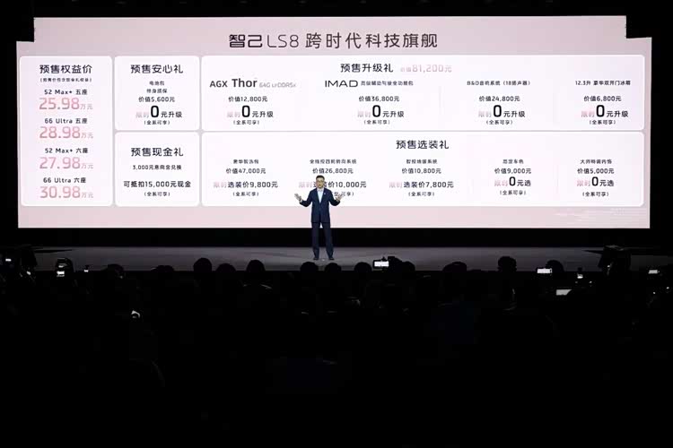 3月26日晚,智己汽车“跨时代科技旗舰SUV”智己LS8预售发布会如期而至。会上,智己正式公布新车预售价格区间(25.98-30.98万元),车辆分别搭载52kWh航盾电池/66kWh超级骁遥MAX电池,提供五座、六座两种空间布局选择,并于4月16日正式上市。