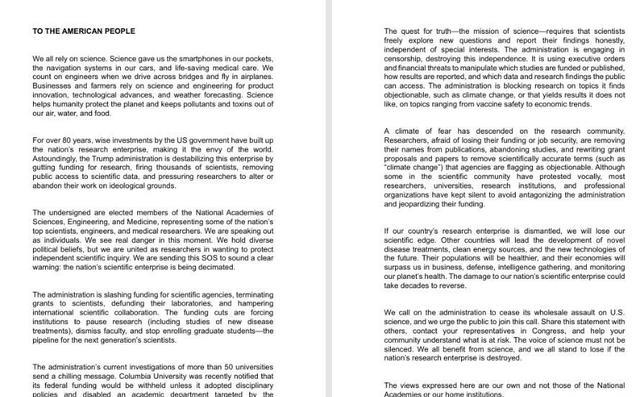 美国号称自由美利坚,但是在特朗普的约束下,连学术自由都有点无法维持了,不仅是华人科学界在美国不好过,甚至是美国自己的科学家,日子也不好过,在三月底,就有将将近两千个美国院士,联合发表公开信,指责特朗普现在的政策对美国科学的影响和毁坏。