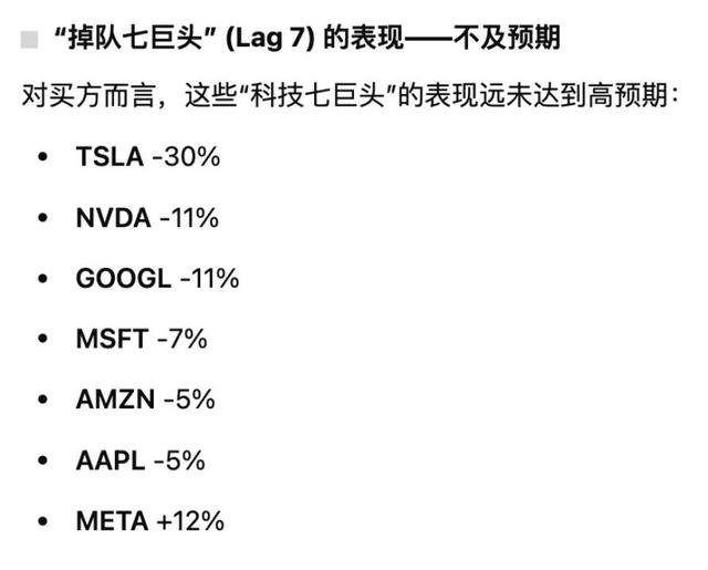 |七巨头年初以来的表现。部分涨幅已经归零或转跌
