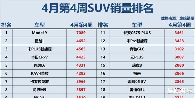 SUV市场这盘棋,谁说燃油车就一定凉凉?4月第四周的销量数据一出,这脸打得,啪啪响!