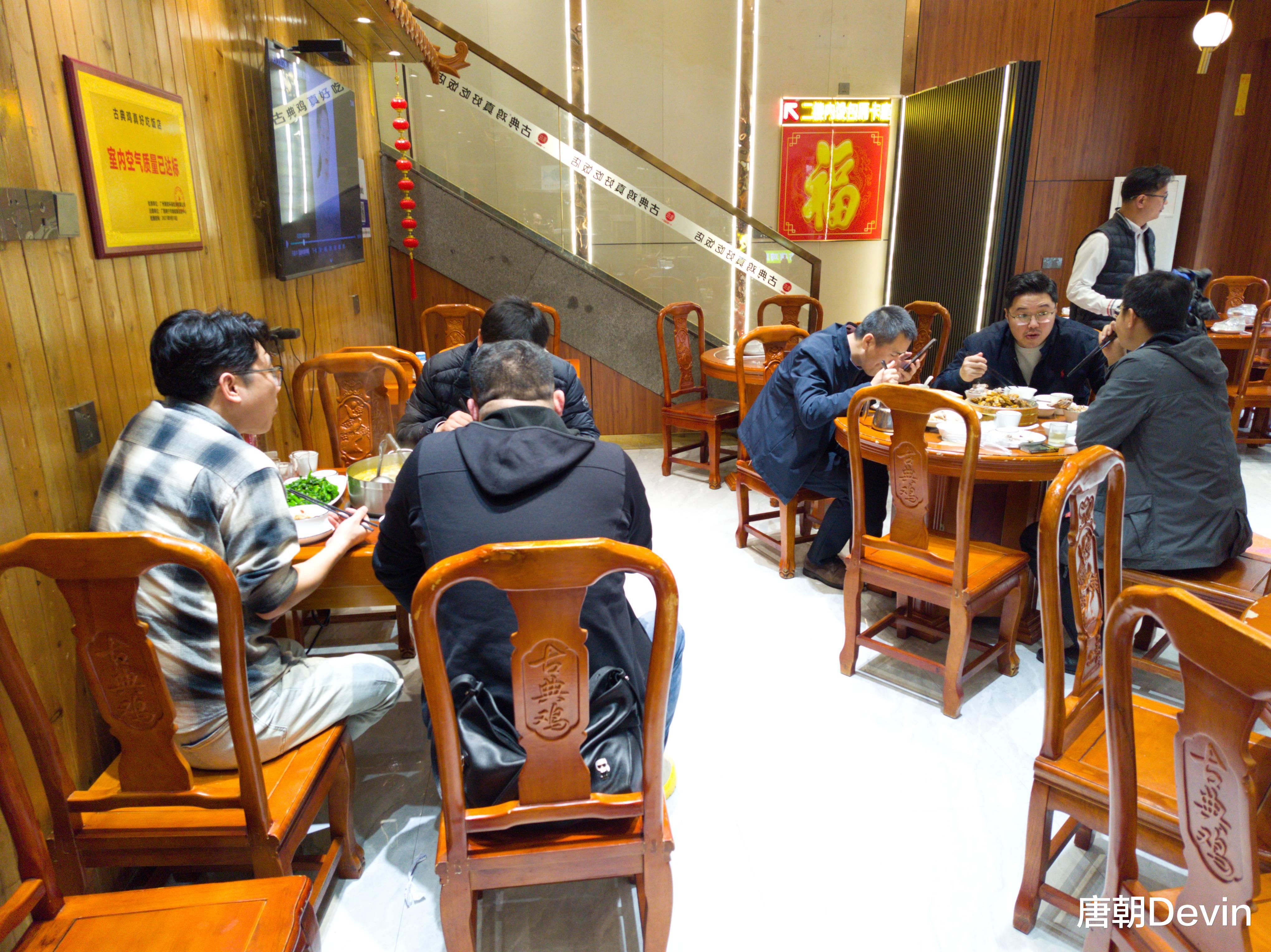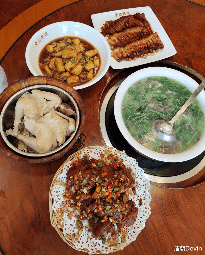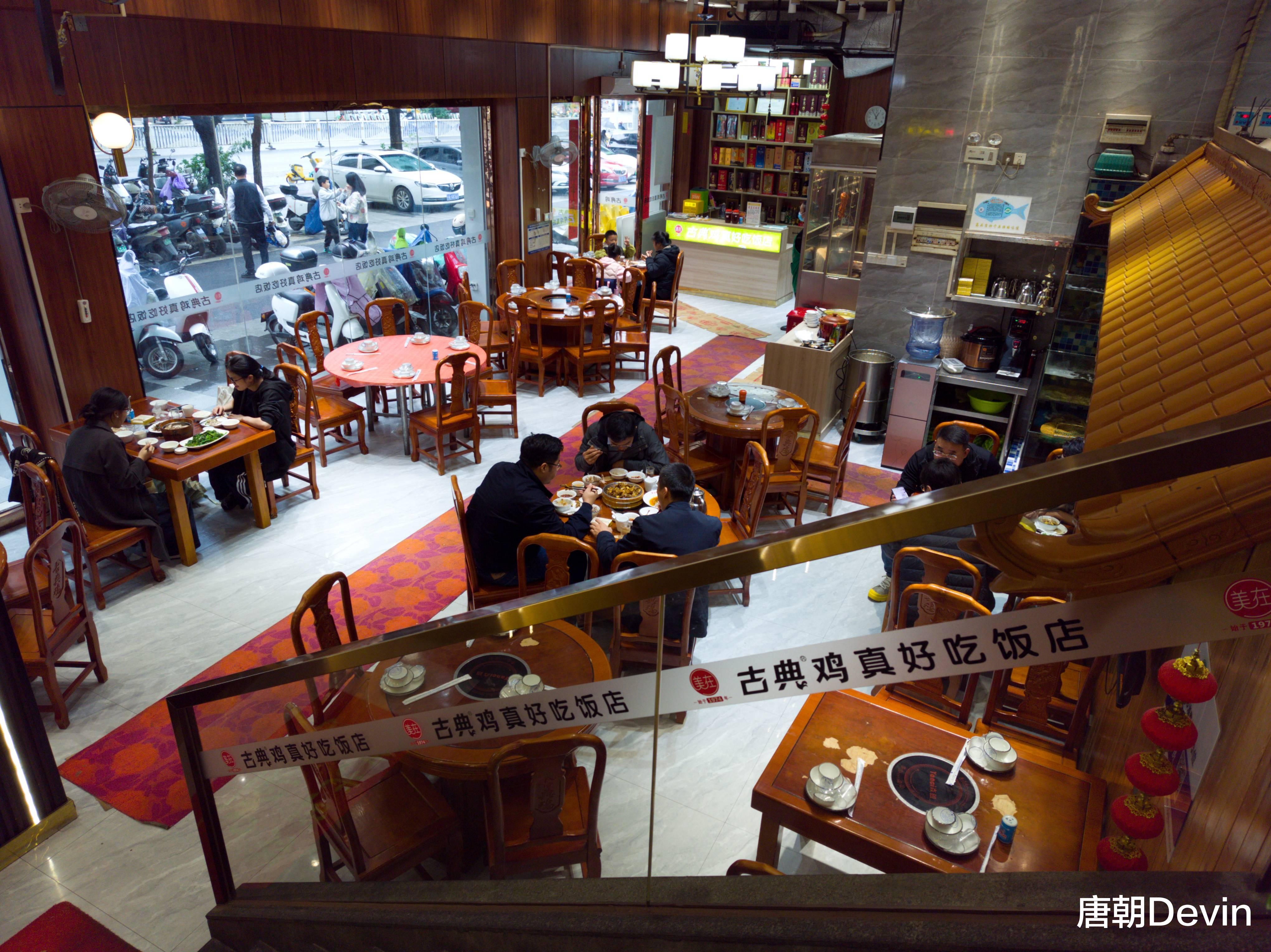 店内宽敞明亮,桌椅古香古色。时近中午,不少顾客正在店里用餐。我们落座后,点了几个小菜,当然少不了其招牌美食——古典鸡。
