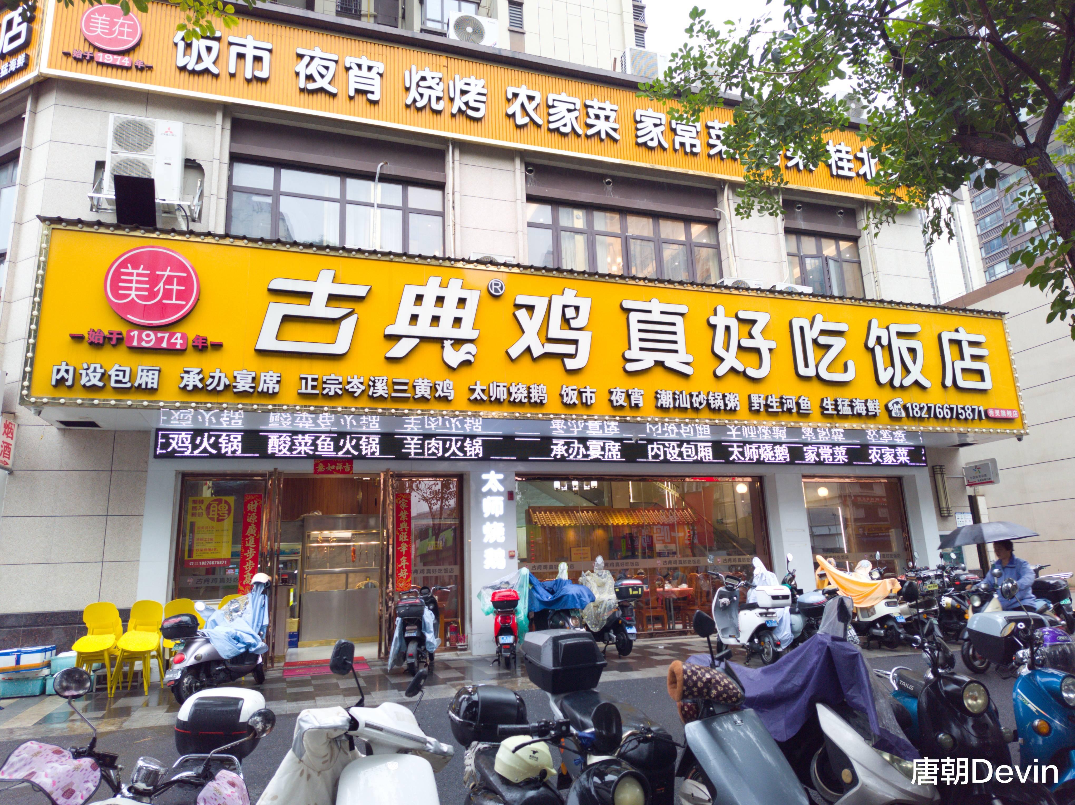近日和朋友路过广西南宁市西乡塘区秀灵安阳路口附近,发现有一家名为“古典鸡真好吃饭店”的餐馆,装潢高端大气,门头招牌非常显眼。因其主打古典鸡品牌,便进去一探究竟。