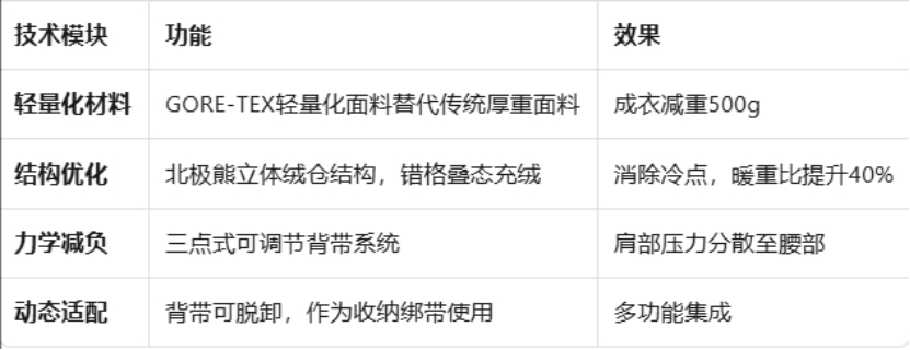 IGR认证测试验证了该系统在真实使用场景下的有效性:无论是极地科考的长途跋涉,还是都市通勤的温差变化,背带系统均能保持稳定的力学支撑。