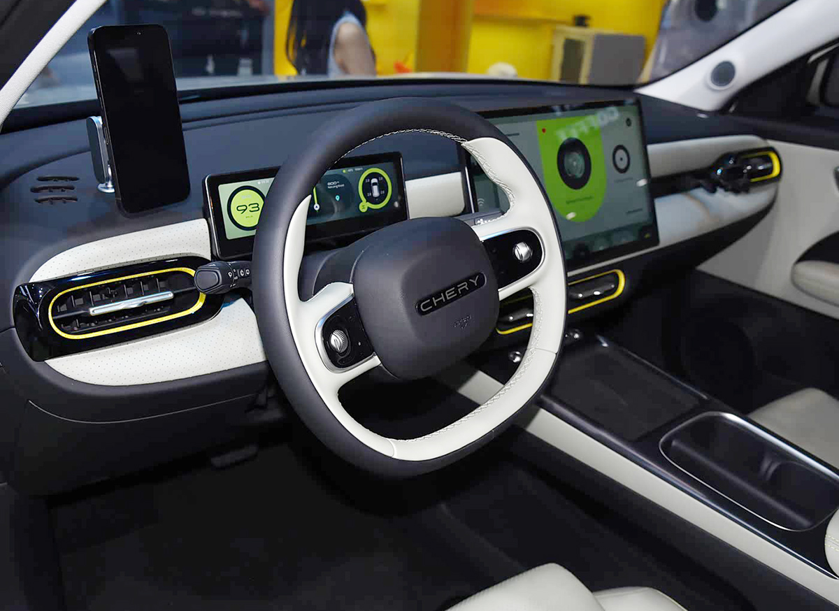 内饰部分,中控台造型简约立体,使用了悬浮式的仪表盘和中控屏,空调出风口为圆润的轮廓,两幅式方向盘造型很别致。