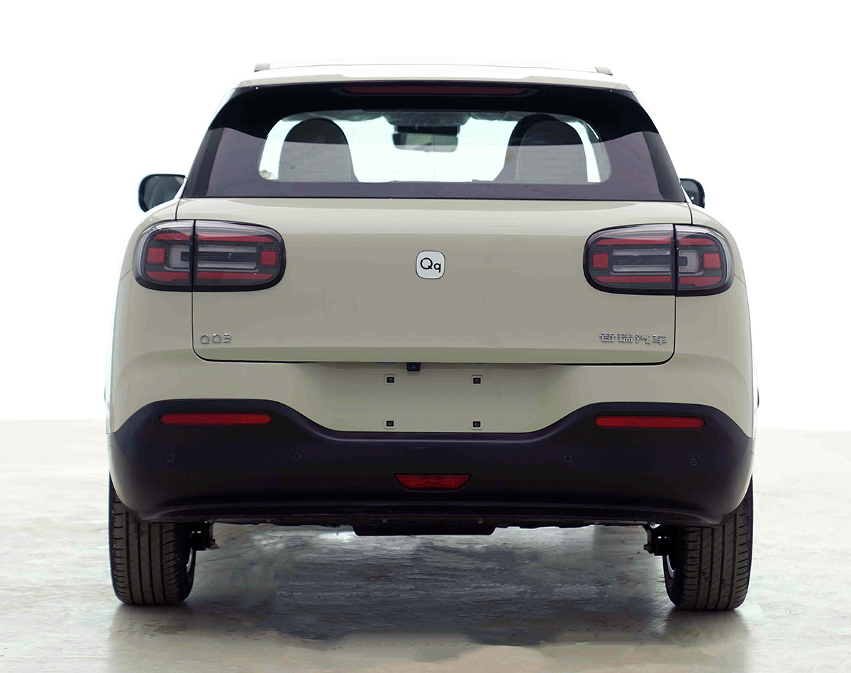 新车前脸使用了大面积封闭式造型,整体轮廓很圆润,大灯使用了椭圆形设计,内部带有灯眉和镀铬装饰,有着不错的精致感。前杠下部带有黑色中网,下包围也是黑色的涂装。从申报信息来看,新车使用了字母“Qq”车标。