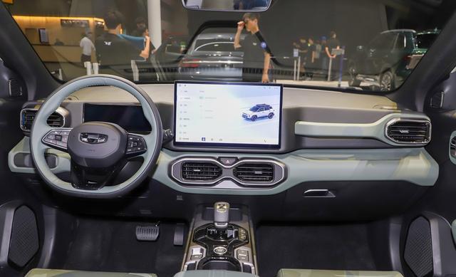 车内布局融合科技与硬派风,副驾前方设扶手。配色可选仙踪绿或旷野灰。中控屏为14.6英寸悬浮式,配Flyme Auto系统,方向盘前设8.8英寸全液晶仪表盘。
