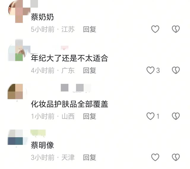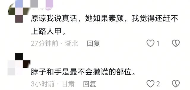 其次,她的脸上卡粉,粉底打得不均匀,尤其眼角皱纹多,粉底更加不均匀,显得眼角的褶子也比较多,就很显老了。
