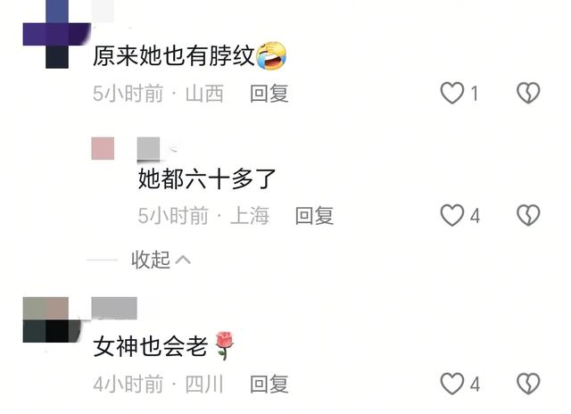 看到刘嘉玲的怼脸拍以后,网友纷纷直呼,原来女神也老了,毕竟60岁了,脖子暴露了年龄,她的颈纹也是非常明显的。