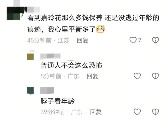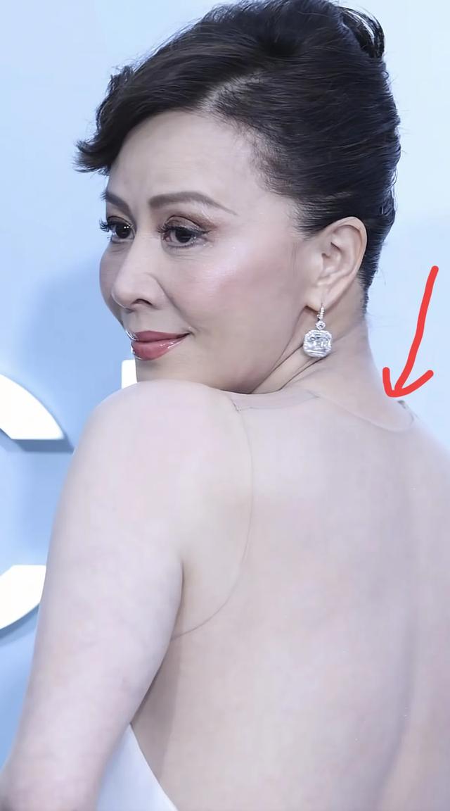 刘嘉玲面对镜头微笑的时候,头稍微动了一下,脖颈纹好多,都说女人的脖子和手背不会撒谎。