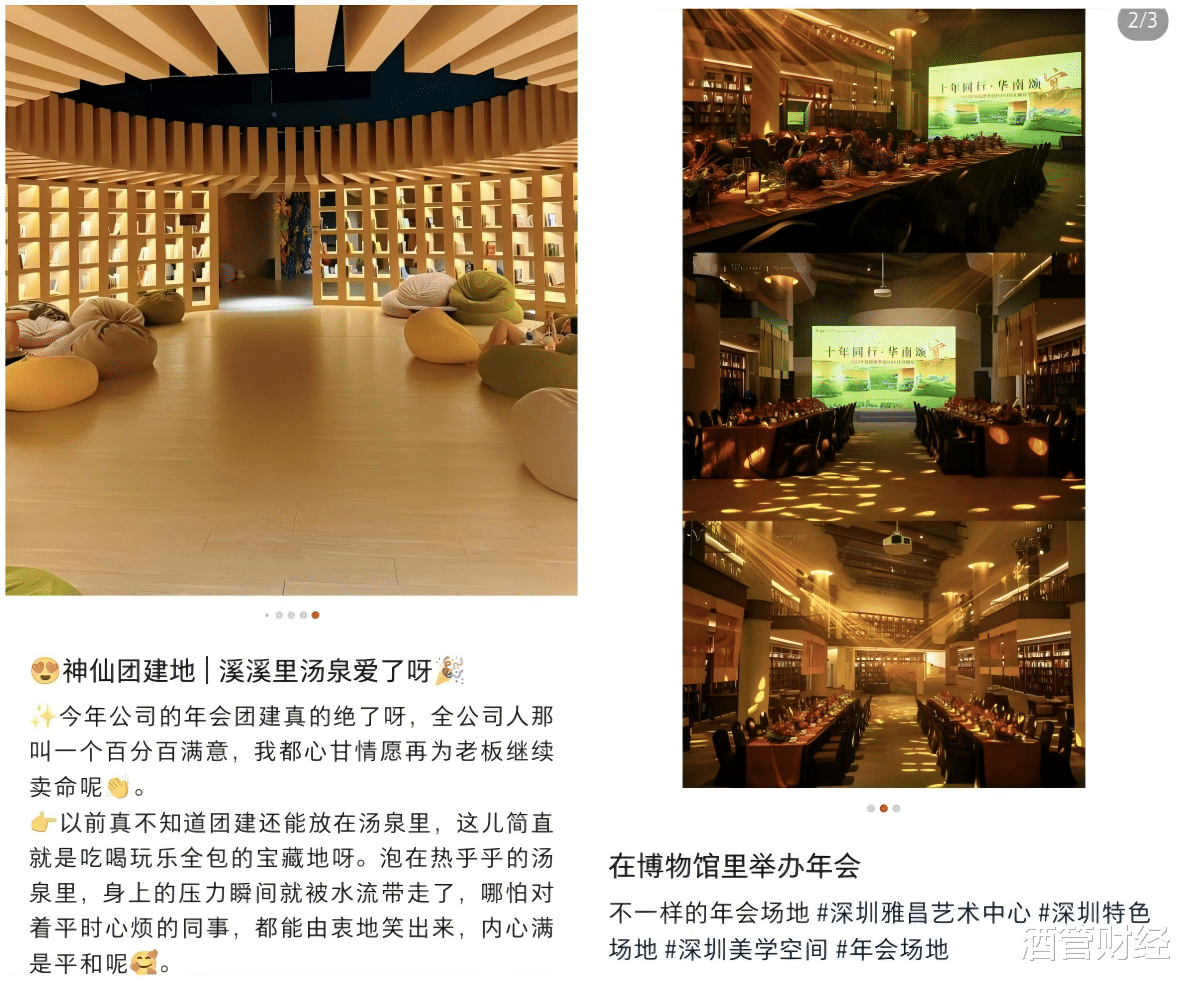 取而代之的是,城郊的温泉民宿悄然满房,新开的美术馆迎来一批批团建客人,甚至高端洗浴中心也成了企业年终活动的热门选择。