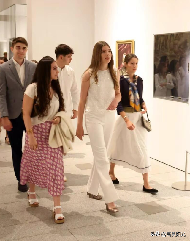 她的好看,是“做自己”的底气在发光莱昂诺尔公主作为王储,穿搭更偏向“未来女王”的端庄,而索菲亚的风格里,藏着18岁女孩该有的灵动。春天穿深蓝针织毛衣搭微喇牛仔裤,像极了大学里踩着单车去上课的学姐;全家出席活动时,她选无袖落肩T恤配拖地长裤,侧腰镂空的设计高级却不刻意,比姐姐的职业装多了份“我还在成长”的真实感。