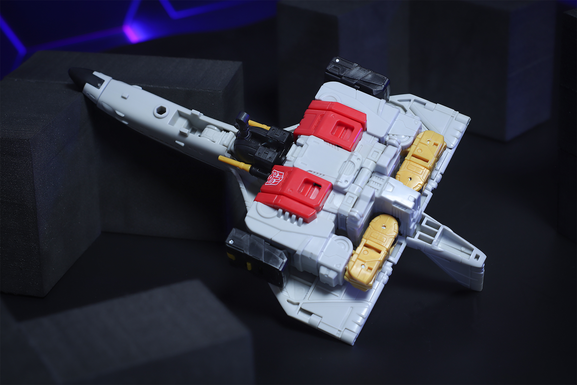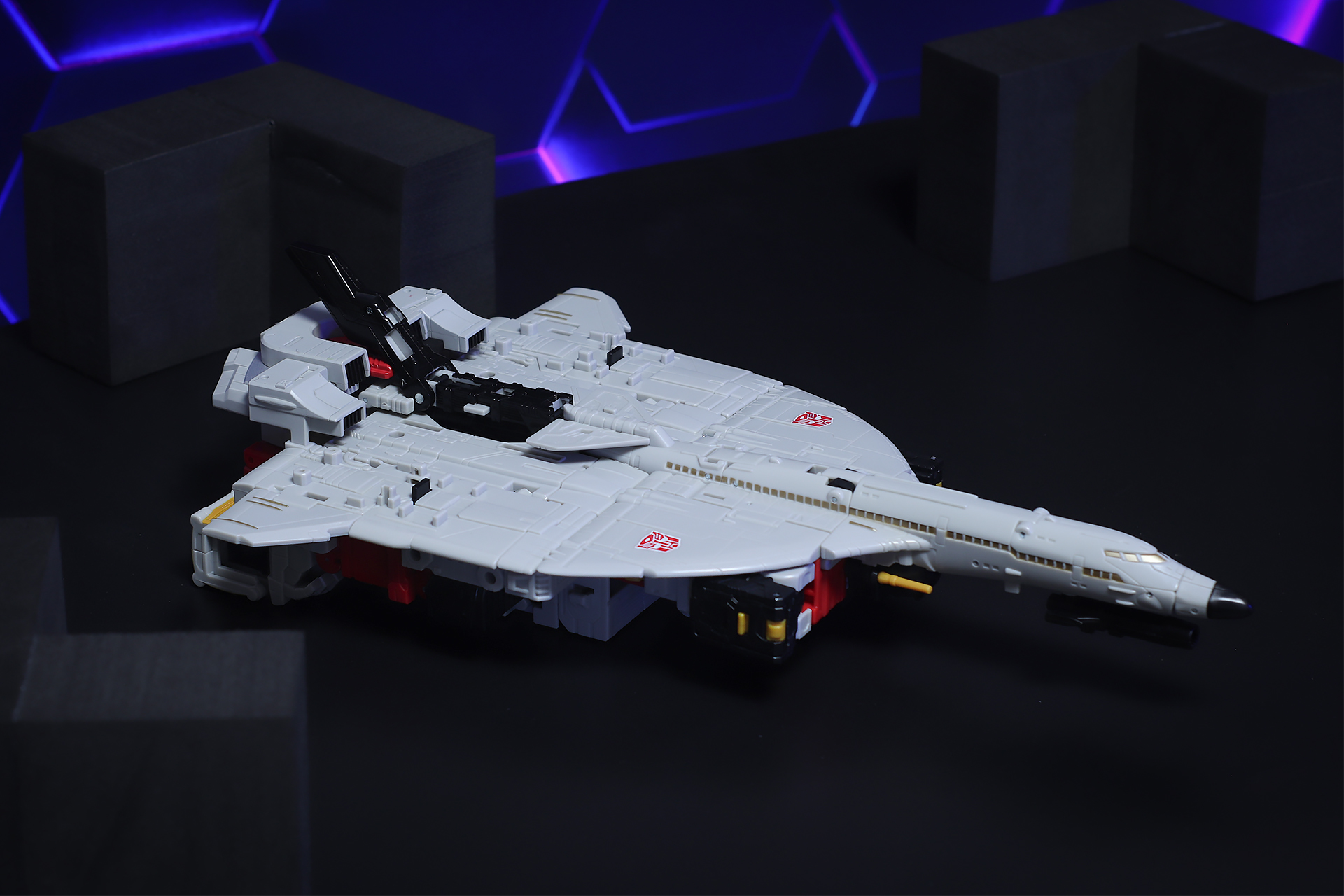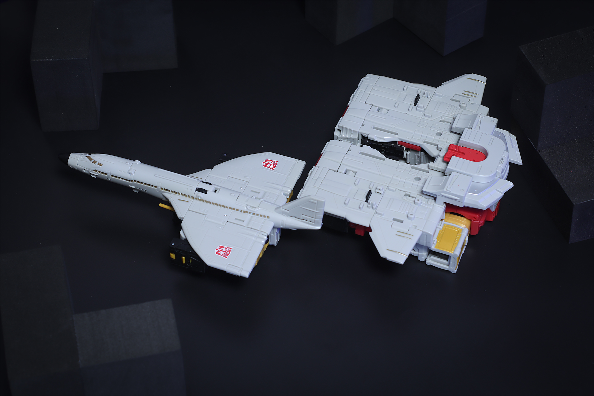银剑是汽车人空中部队飞行太保的队长,飞机形态是我至今都喜欢的类协和客机外观风格,科幻又优雅。虽然定位是8+的模玩,但依旧细节满满,甚至连机头部分都有预留下压设计,致敬到了这款超音速飞机的精髓。