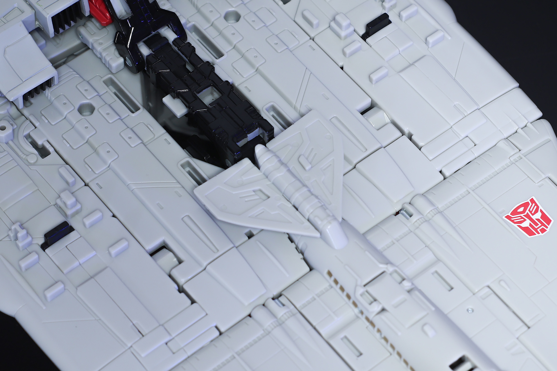 说实话,每每在这机翼上看到两个汽车人的博派标志(涂装还挺精细的),总是会把思绪拉回到动画,有了银箭指挥的飞行太保,汽车人空中打击能力可是有着显著的提升。咱说回这个模型,它整体上多为塑料成型色,适合把玩。个别如飞机舷窗的金属漆点缀区域依然做的非常细致,没有偏移、溢出等情况。