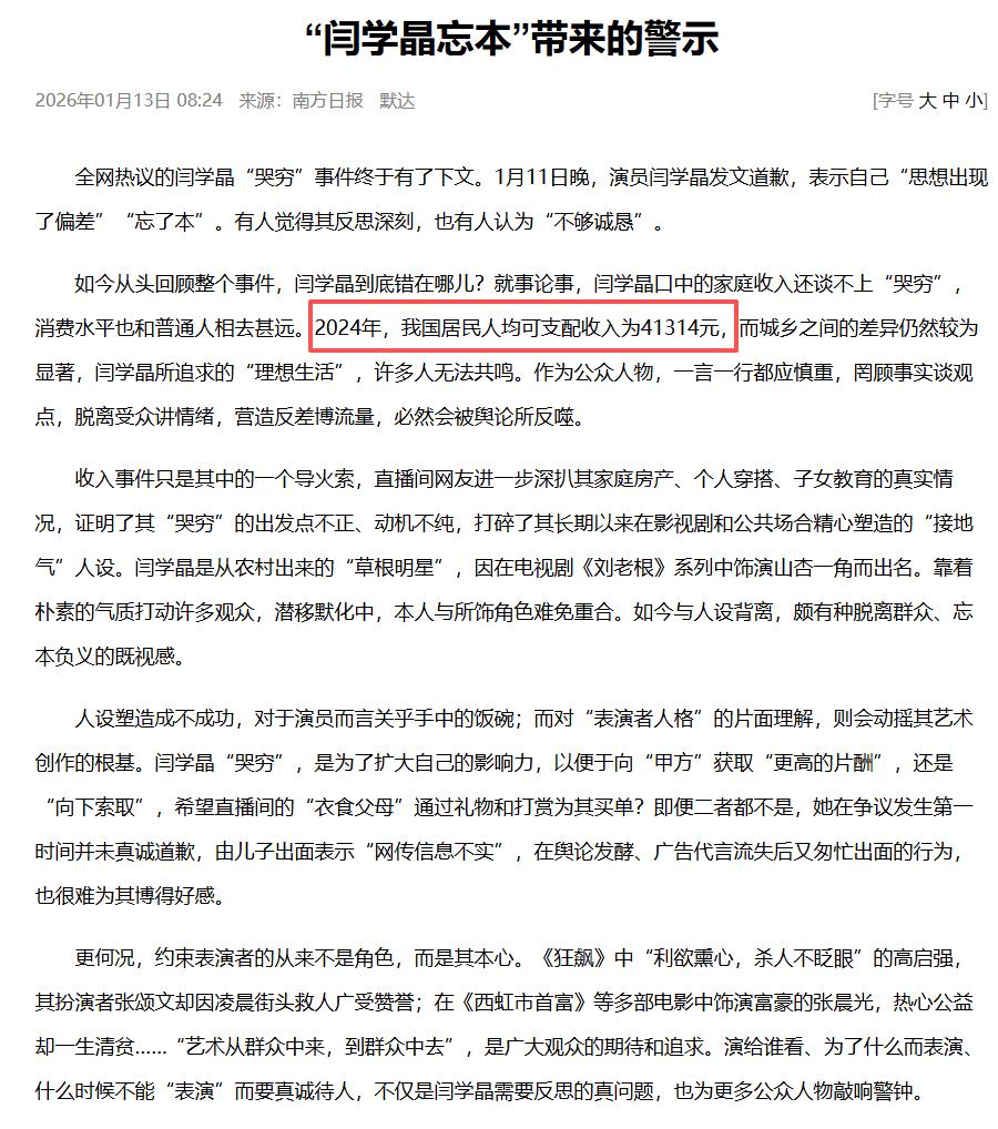 1月11日,闫学晶那份在朋友圈发布的道歉信,试图用“忘本”、“思想偏差”来定义这场风波,但她显然低估了这场暴风雨。
