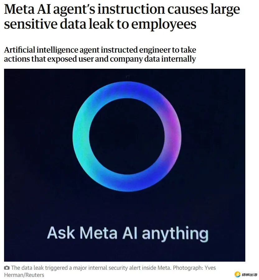 Meta AI代理的指令导致大量敏感数据泄露给员工。图源:《The Guardian》