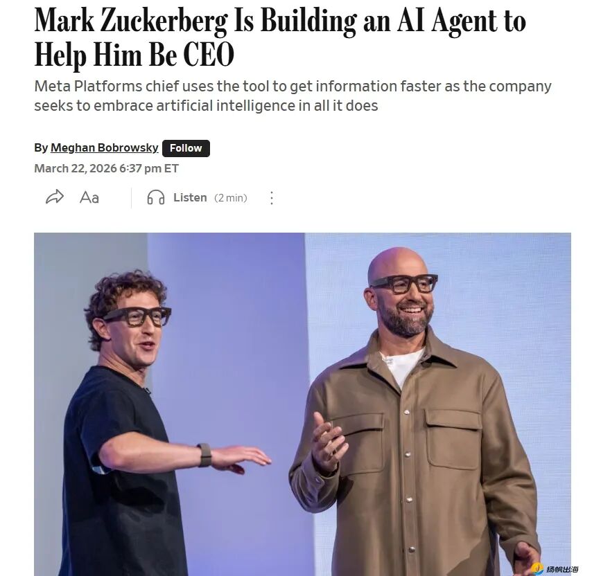 3月23日早间,《华尔街日报》报道称,Meta正在推动一场以“AI智能体”为核心的内部转型:目标是让员工普遍配备AI助手,包括CEO扎克伯格本人。