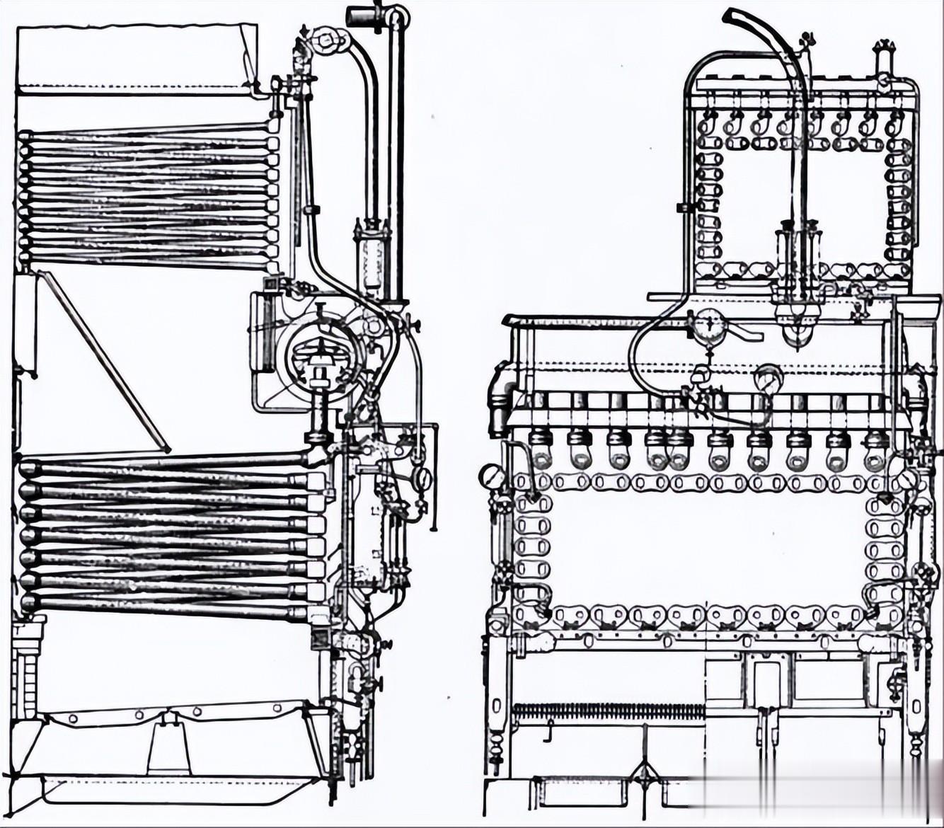5、动力系统查理马特级的动力系统主要采用两台立式三胀蒸汽机驱动双轴推进,蒸汽来源主要为二十至二十四台拉格拉费尔-达莱斯特水管锅炉。然而,这批锅炉,特别是其焊接水管的设计,在服役初期暴露出严重的安全隐患,若雷吉贝里号便曾因锅炉管爆炸造成人员伤亡,并因此延误了服役进程。唯一的例外是布韦号,它采用了三台蒸汽机和三十二台更先进的贝尔维尔水管锅炉。