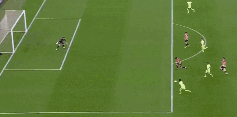 第71分钟,毕尔巴鄂竞技踢出快速反击,伊尼亚基-威廉斯再次获得良机,接应传中凌空扫射,再次将球打偏,随后弗里克大胆调整,莱万和加维双双被换下,德容和费兰出战。
