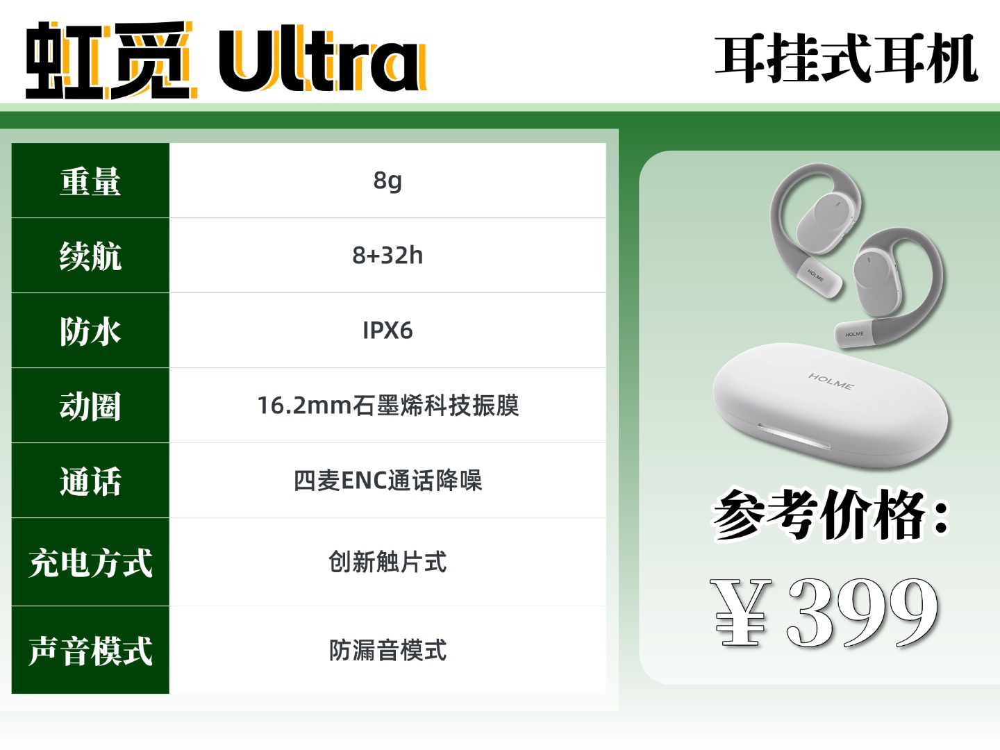 虹觅 Ultra戴着特别舒服,单只才 8 克,轻得跟没戴似的,耳挂是软乎乎的液态硅胶,贴在耳朵上不夹不压,戴四五个小时耳廓也不会酸胀疼,不管是通勤上班、日常走路,还是慢跑运动,都特别稳,不容易掉,戴眼镜也不怎么碍事,出汗也不打滑。