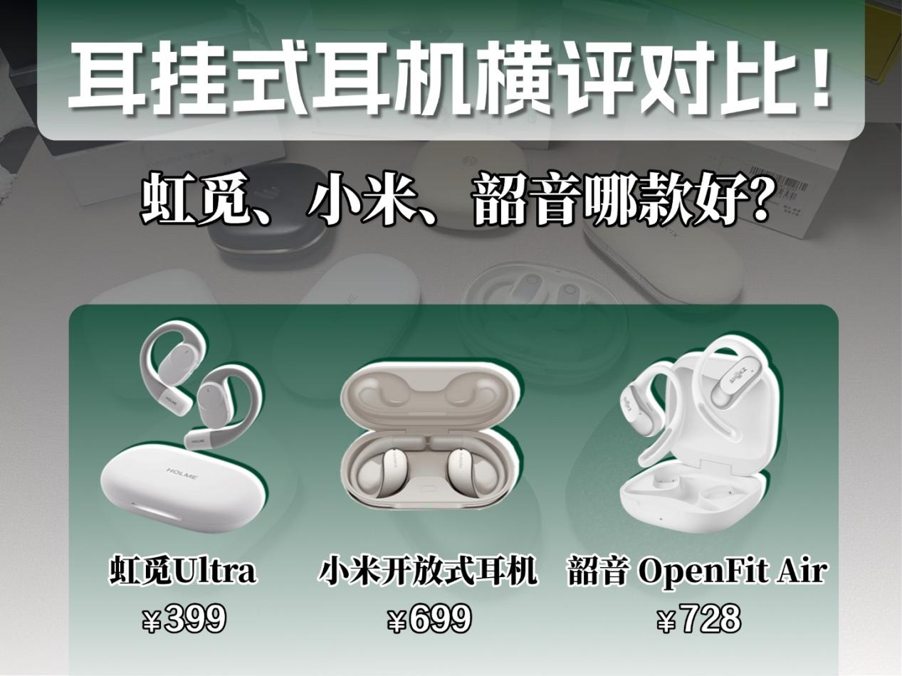 最近我试了十几款开放式耳机,最后选出三款有代表性的来仔细对比,分别是卖 399 元的虹觅 Ultra、699 元的小米开放式耳机,还有 728 元的韶音 OpenFit Air。接下来我会从性能参数、实际听着怎么样、外观做工和防漏音效果这些方面,分别说说这三款耳机的情况,希望能给正在选耳机的人帮上点忙,让大家能更快选到合适的款式。