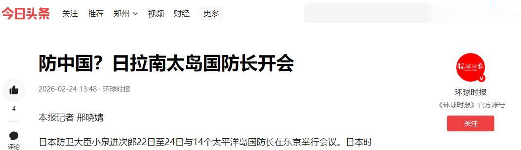 防中国?日拉南太岛国防长开会,2026-02-24 ,环球时报
