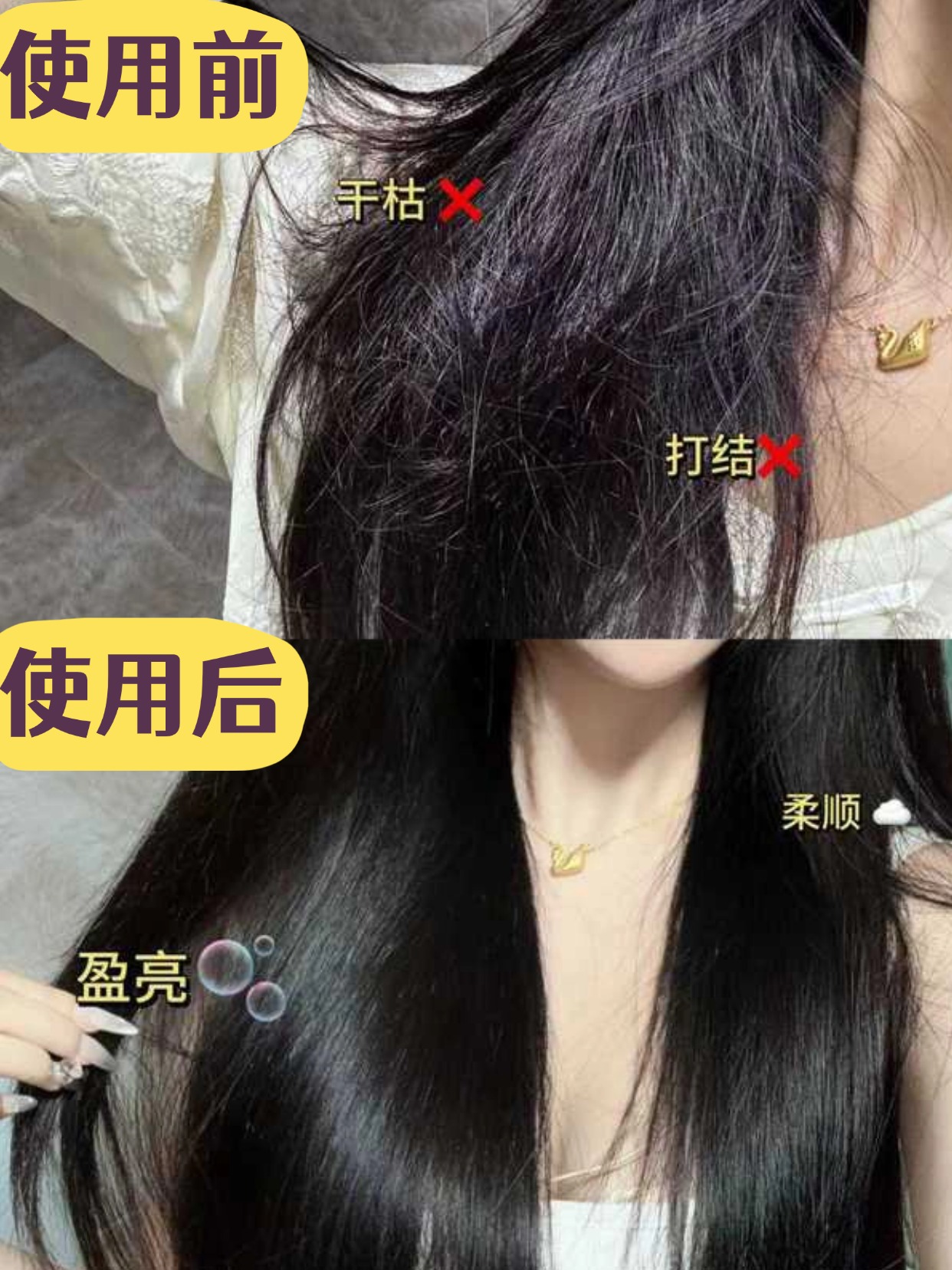 它的使用感受走的是“慢工出细活”路线,前两次几乎没啥感觉,第三次开始突然发现梳子上的断发少了,发尾开叉也没那么张牙舞爪了。最打动我的是某天扎马尾时,皮筋滑下来那段居然很顺,没有以往那种涩住又弹回去的尴尬。不过新版好像调整过质地,比之前更稀了,用量得比从前多一倍才能铺满全长,怀疑是换了包裹释放体系导致有效物浓度下降,不然不会需要频繁补涂。