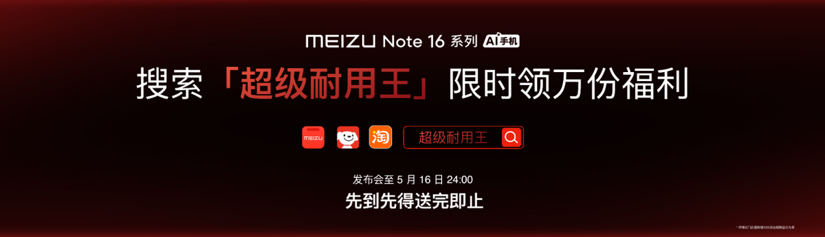 发布会后至 5 月 16 日 24:00,上魅族官网、京东、淘宝搜索“超级耐用王”,均可以领取到惊喜福利,欢迎前往了解。
