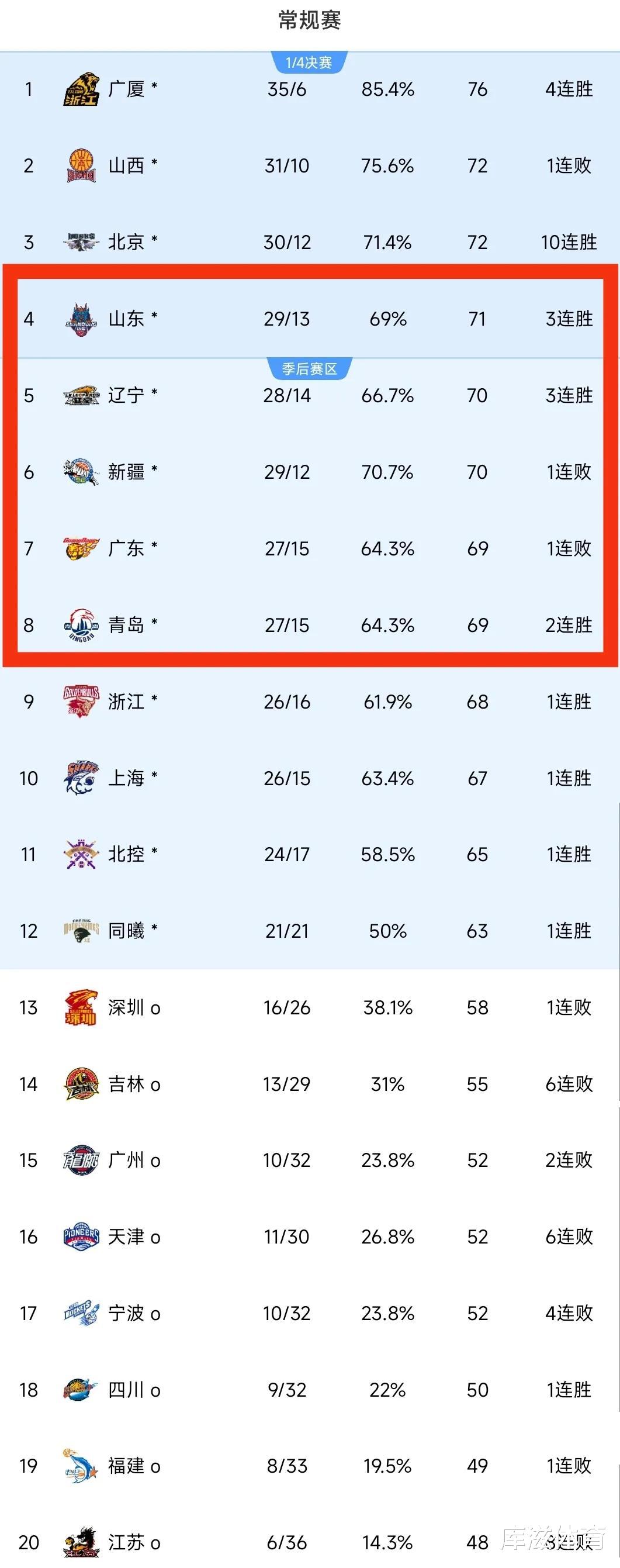下面就看看CBA球队最新积分排名,北京位居第三,辽宁第五,第4的山东到第8的青岛相差两分。