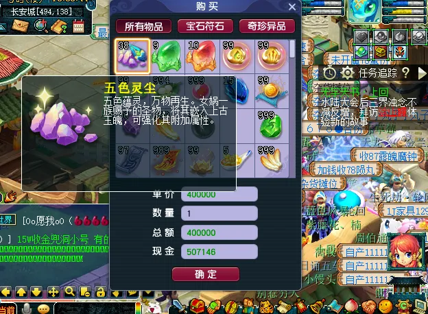 为了满足玩家的游戏需求,长安城(499,141)宝石商人处“五色灵尘”、“仙露小丸子”、“炼兽丹”道具若在本次刷新后售罄,系统将在下次刷新时依照一定比例提升售卖总量。