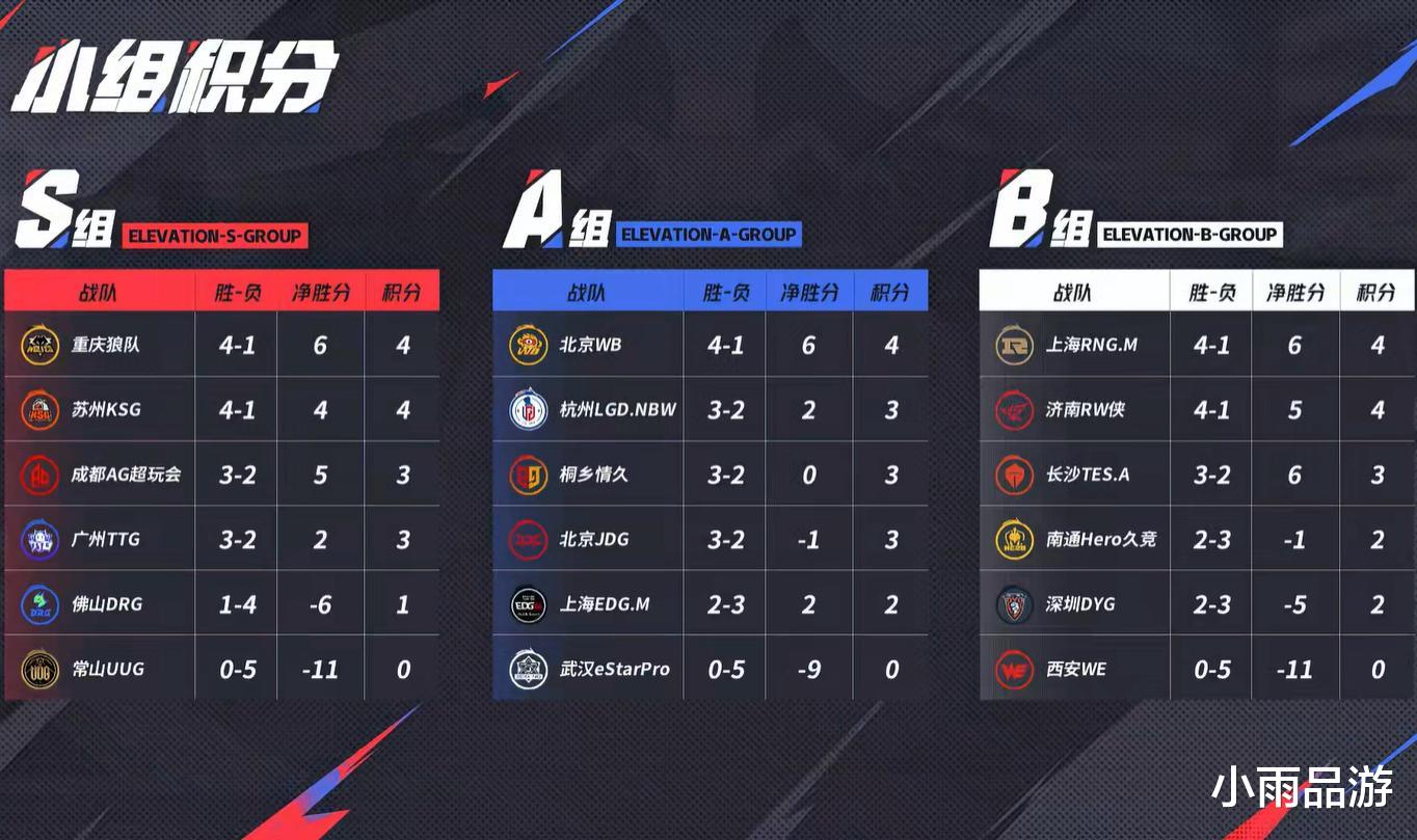 S组方面重庆狼队后来者居上,排名第一收官,四强格局基本已定,成都AG超玩会想要卫冕困难重重。