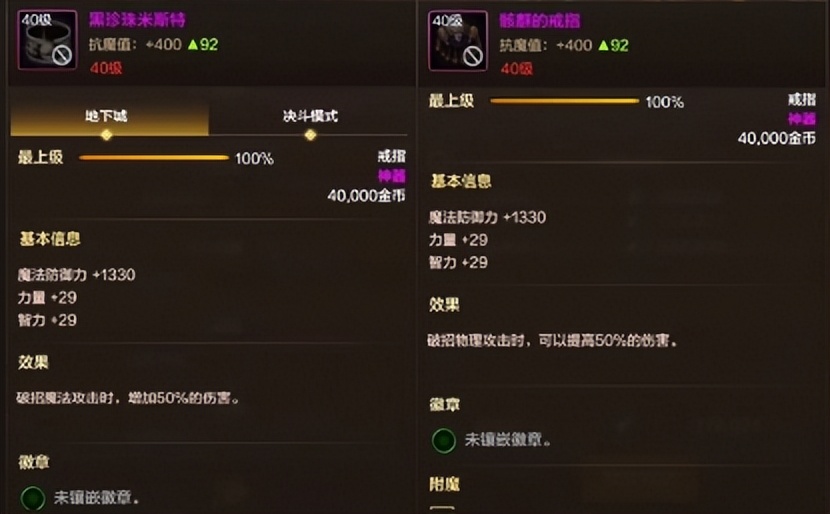 版本最强的两个戒指,有句话叫做有骨戒选骨戒,没骨戒选黑珍珠,两个戒指的地位一直没办法动摇,比团本戒指还强,至少还能再强势两个版本,土豪直接入手吧。