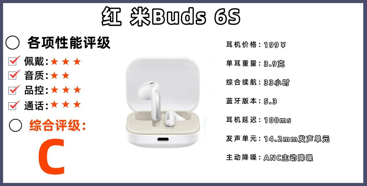 Redmi Buds 6S蓝牙耳机的续航能力为单次使用7小时,配合充电盒使用总续航时间可达33小时,采用了蓝牙版本为5.3技术,日常的连接稳定,延迟表现大概在100ms左右,听音乐看剧延迟可以接受。