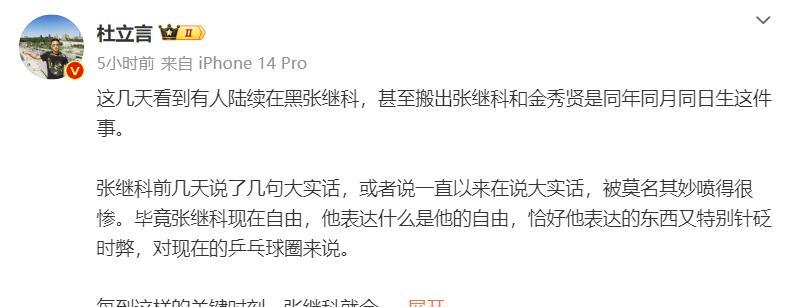 张继科这么一说,就跟捅了马蜂窝似的,一群自称懂行的大V蜂拥而上,借机发挥。贺晓龙、杜立言还有那个舜哥说球Sean,一个个跟打了鸡血似的,纷纷发文附和。这几位平时就喜欢对国乒指手画脚,这回更是抓住机会大放厥词。他们说话倒是挺有一套,什黑红也是红着好像很有道理,其实就是想蹭热度罢了。