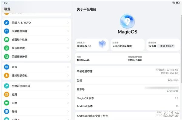 荣耀Tablet GT:大屏旗舰,续航无忧荣耀Tablet GT外观已官宣,酷似iPad Pro的方形相机模组与窄边框设计尽显高端。泄露信息显示,其型号为ROL-W60,配备2800x1840分辨率屏幕,或为12.3英寸OLED,支持144Hz刷新率与IMAX Enhanced认证,视觉体验震撼。核心搭载联发科Dimensity 8350芯片,搭配12GB RAM与256GB存储,性能足以应对游戏与生产力需求。