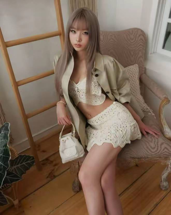出国留学后,身边的朋友都更偏爱这种露脐装、吊带衣、紧身裙,许曦文也自然接受了这种审美,不过她的小麦肤色、应该是主动美黑的吧。