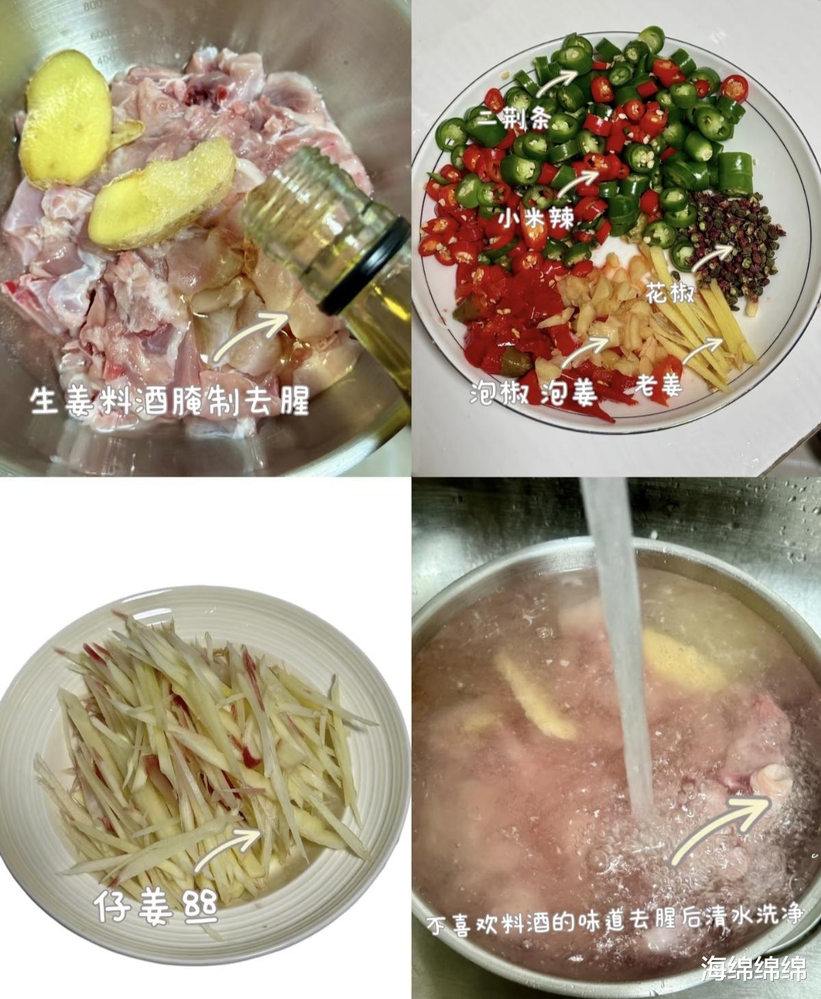 制作这道菜,食材的准备是关键。选用新鲜的兔肉,切成均匀的小丁,用生姜片和料酒抓匀腌制10分钟,这一步能有效去除兔肉的腥味。同时,准备好配菜:新鲜的仔姜切成细丝,二荆条辣椒和小米辣切圈,再搭配泡椒、泡姜、老姜和花椒。这些配料共同构成了仔姜兔鲜辣酸香的灵魂。